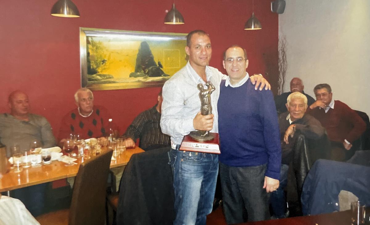 2000 Captain presenting Spyros Neophytou with a Momento Trophy to mark 10 years of sponsorship from Bank Of Cyprus